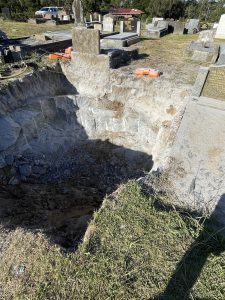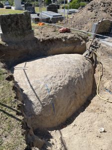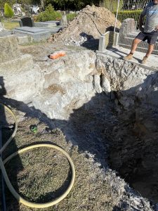 Delicate operations required for this large granite rock to be removed next to existing gravesites