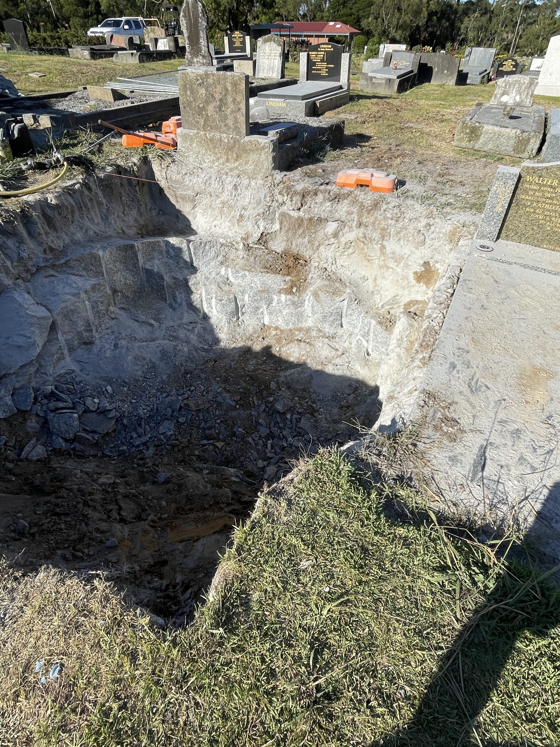 2. Delicate granite rock removal in cemetery